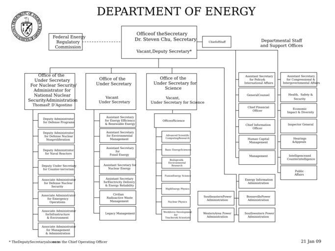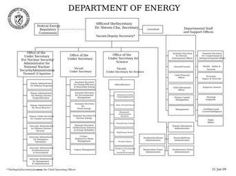 Keywords: DOE OrgChart 012209.svg en U S Dept of Energy org chart as of January 21 2009 http //www energy gov/organization/orgchart htm U S Department of Energy 2009-01-21 DOE_Org_Chart jpg File converted from DOE's PDF to SVG PD-USGov Organizational charts of the United States Department of Energy |