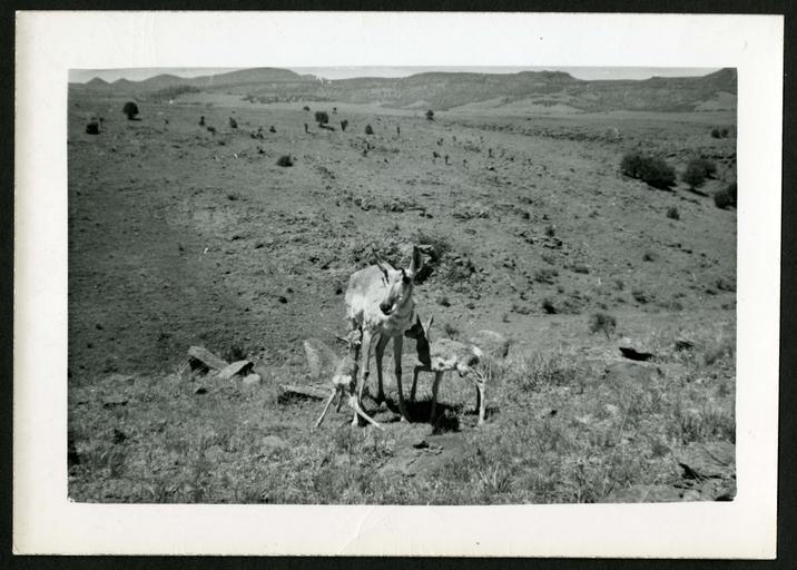 | Keywords: smithsonian institution archives smithsonianinstitutionarchives smithsonian field book project fieldbookproject photo border outdoor Creator: Helmut Karl Buechner Local number: SIA2014-00020 Summary: Photograph documents observations of pronghorn in Texas by Helmut Buechner in 1947. Dates: 1947 Collection: SIA RU 007279, Helmut Karl Buechner Papers, 1939-1975, Box 29, Folder 1, Envelope 20 Repository: Smithsonian Institution Archives View more collections from the Smithsonian Institution. Creator: Helmut Karl Buechner Local number: SIA2014-00020 Summary: Photograph documents observations of pronghorn in Texas by Helmut Buechner in 1947. Dates: 1947 Collection: SIA RU 007279, Helmut Karl Buechner Papers, 1939-1975, Box 29, Folder 1, Envelope 20 Repository: Smithsonian Institution Archives View more collections from the Smithsonian Institution. |