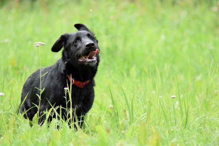 Keywords: dog black puppy cute happy young doggy fun funny nature labrador shepherd canine friend play pedigree companion adorable pet playful summer grass outdoor