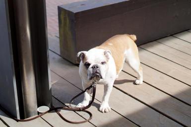Keywords: dog bulldog animal english bulldog cute view lead pet