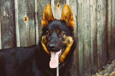 Keywords: dog canine german shepherd pet black animal portrait head fence