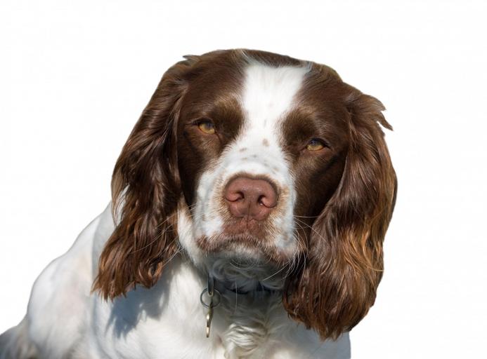 Keywords: dog english springer spaniel springer spaniel springer spaniel animal pet canine pedigree breed beautiful close-up details face head isolated white background