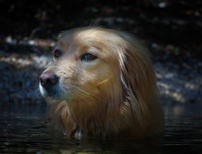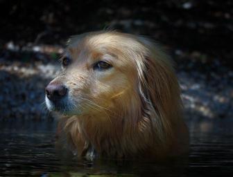 Keywords: dog hybrid pet water fun wet swim drink golden retriever sea relaxation water dog coast