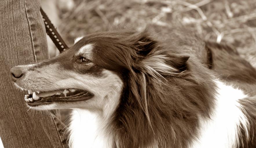 Keywords: dog long haired collie tricolor sepia port animal portrait