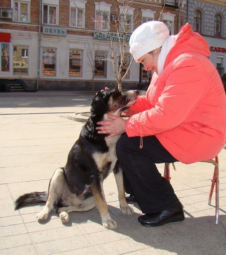 Keywords: dog sitting mistress street sun