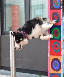 Keywords: dog trick border collie city pole jump dog show trick
