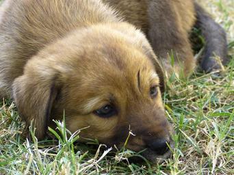 Keywords: dog young tired sleepy cute pet animal puppy small brown