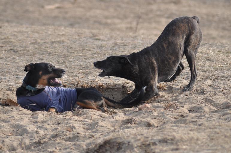 Keywords: dogs communication play together in partnership friendship
