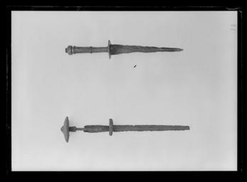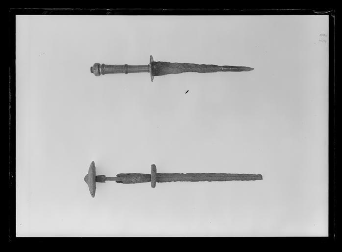 Keywords: Dolk sammansatt - Livrustkammaren - 17594.tif Sammansatt av ursprungligen ej samhörande delar Klingan sannolikt från sen medeltid Kavel av sengotisk typ Knapp och parerplåt sentida 1830-50 Monteringen av de olika delarna till av allt att döma utförd under sistnämnda tid Fäste av mässing Knapp pålödd kaveln och av rund vertikalt hoptryckt form utmed mitten bård hålkäl Nitknappen som är platt och med ojämnt flersidig kontur utgör huvudet till en i knappen inskruvad kort skruv Kavel koniskt avsmalnande mot klingbasen Rund överdelens mitt och nederdel en snedräfflad ring Mellan dessa ett yttäckande mönster av stående rektangulära fält med rut- och kryssmönster i låg relief och med spår av påhamrat silver Parerplåt slät rundat skivformig och vågrät utskjutande på vapnets utsida utmed kanten bård av runda hål Parerplåtens insida liten bredd 18mm rakt nedåtböjd och formad som en palmett Klinga tvåeggad illa medfaren och täckt av gravrost Eggsidorna ojämna mycket skadade Jordfynd original caption ca other date - 1400 1850 brass b1 - blankvapen - fäste material mässing - silver b4 - blankvapen - fästdekor material silver size mm 272 size mm 45 size mm 168 klinga size mm 25 klinga g 190 LRK Alexander E C G von Post Kapten 1843-1899 Stora Djulö Sverige place of origin original filename LN_B01852_004732 52444 inventory number LRK 17154 17594 CC0 Dolk sammansatt - Livrustkammaren - 17594-negative tif <gallery caption Different images of same object > File Skivdolk - Livrustkammaren - 77366 tif </gallery> Media contributed by LSH dim-with multiple size templates Dagger images from Livrustkammaren Media contributed by LSH 2013-10 |