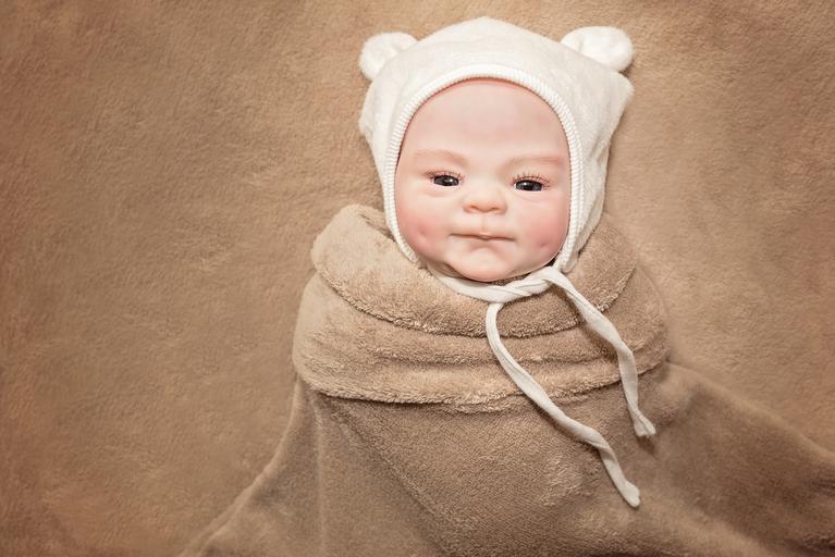 Keywords: doll baby doll artist doll female baby cap wrapped up warm close product photography