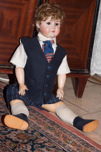 Keywords: doll boy play toys face eyes portrait old child pretty head old toys children toys shorts vest tie take out historically