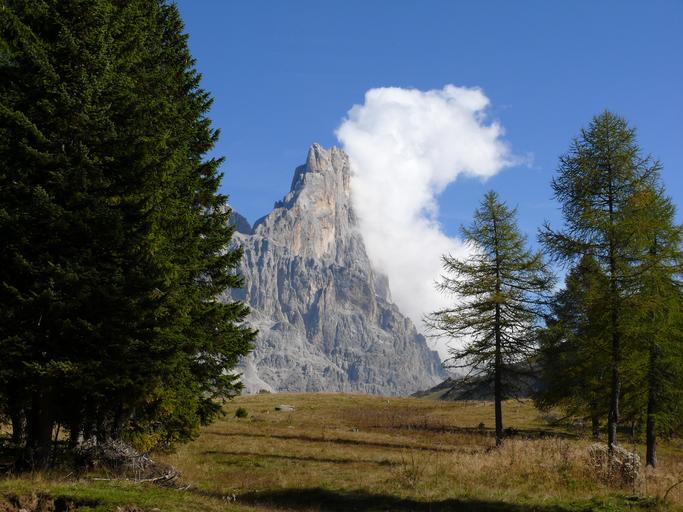 Keywords: dolomites mountains rock forests clouds sky italy summer