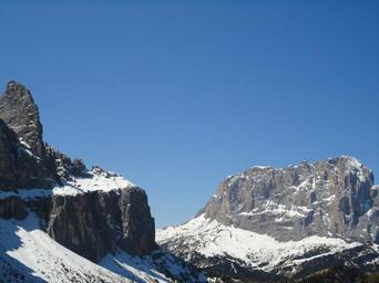 Keywords: dolomites mountains rock panorama sky blue mood italy south tyrol villages nature
