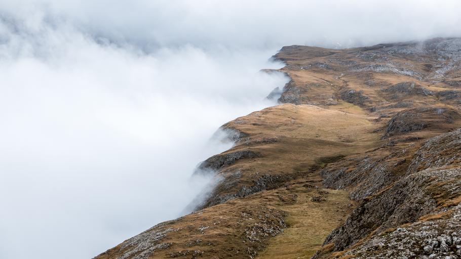 Keywords: dolomites south tyrol alpine landscape nature mountains fog edge abyss sea of fog karg