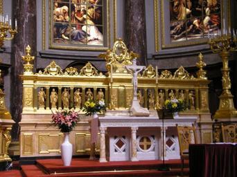 Keywords: Dom Berlin April 2006 008.jpg Interior view of Berliner Dom view of altar Source self-made I release it into the public domain Gryffindor 19 50 10 April 2006 UTC 2006-04-05 own assumed Gryffindor Altar area Berlin Cathedral ImageNote 1 undefined undefined undefined undefined 2560 1920 2 Apostles's Screen by Karl Friedrich Schinkel ImageNoteEnd 1 ImageNote 2 undefined undefined undefined undefined 2560 1920 2 Two gilded iron ceremonial candleholders by Karl Friedrich Schinkel ImageNoteEnd 2 ImageNote 3 undefined undefined undefined undefined 2560 1920 2 White marble and yellow onyx altar by Friedrich August Stüler ImageNoteEnd 3 |