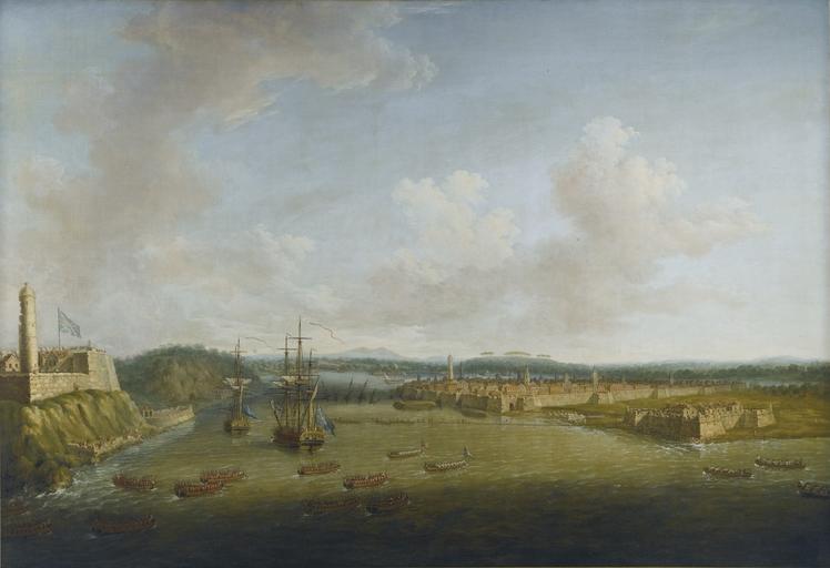 | Keywords: Dominic Serres - The Capture of Havana, 1762, Taking the Town, 14 August.jpg Artwork Creator Dominic Serres A depiction of an episode from the last major operation of the Seven Years War 1756-63 It was part of England's offensive against Spain when she entered the war in support of France late in 1761 The British Government's response was immediately to plan large offensive amphibious operations against Spanish overseas possessions particularly Havana the capital of the western dominions and Manila the capital of the eastern Havana needed large forces for its capture and early in 1762 ships and troops were dispatched under Admiral Sir George Pocock and General the Earl of Albemarle <br /><br /> The force which descended on Cuba consisted of 22 ships of the line four 50-gun ships three 40s a dozen frigates and a dozen sloops and bomb vessels In addition there were troopships storeships and hospital ships Pocock took this great fleet of about 180 sail through the dangerous Old Bahama Strait from Jamaica to take Havana by surprise Havana on Cuba's north coast was guarded by the elevated Morro Castle which commanded both the entrance to its fine harbour immediately to the west and the town on the west side of the bay <br /><br /> The terms of surrender for Havana were concluded on 13 August and in the painting a flotilla of boats of the fleet are shown ferrying in the occupation forces on the following day At the same time as this was taking place sailors dismantled the boom defence visible in the middle distance The Union flag flies from the fort and the men-of-war are firmly established in the harbour ca 1775 oil canvas cm 125 7 187 9 http //collections rmg co uk/collections/objects/11906 html Royal Museums Greenwich http //collections rmg co uk/mediaLib/287/media-287871/large jpg image object history Painted for General George Keppel 3rd Earl of Albemarle 1724 “1772 or his brother Admiral Augustus Keppel 1st Viscount Keppel 1725 “1786 and thence by inheritance to the last owners <br/>sold at Sotheby's London 06 July 2016 lot 42 credit line exhibition history On long term loan to the National Maritime Museum Greenwich 1948 to 2015 accession number BHC0414 accession number http //www sothebys com/en/auctions/ecatalogue/2016/old-master-british-paintings-evening-l16033/lot 42 html Sotheby's London 06 July 2016 lot 42 PD-old-100-1923 DEFAULTSORT Serres Dominic; Havana Taking the Town; Sotheby's 2016 Dominic Serres Paintings of Battle of Havana 1775 paintings Cuba in the 1760s 18th-century paintings of naval battles Images from Sotheby's |
