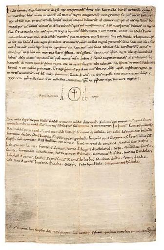 | Keywords: Donació d'Aragó i Peronella als CapÃtols matrimonials de Barbastre (1137).jpg ca Donació d'Aragó i Peronella als CapÃtols matrimonials de Barbastre 1137 ;Latin In Dei nomine Ego Ranimirus Dei gratia rex aragonensis dono tibi Raimundo barchinonensium comes et marchio filiam meam in uxorem cum tocius regni aragonensis integritate sicut pater meus Sancius rex vel fratres mei Petrus et Ildefonsus melius unquam habuerunt vel tenuerunt ipsi vel utriusque sexus homines per eos salvis usaticis et consuetudinibus quas pater meus Sancius vel frater meus Petrus habuerunt in regno suo Et commendo tibi omnes prephati regni homines sub hominio et iuramento ut sint tibi fideles de vita tua et de corpore tuo et de omnibus membris que in corpore tuo se tenent sine omni fraude et decepcione et ut sint tibi fideles de omni regno pretitulato et universis omnibus ad illud regnum pertinentibus salva fidelitate mihi et filie mee Hec autem omnia superius scripta ego prephatus rex Rammirus taliter facio tibi Raimunde barchinonensium comes et marchio ut si filia mea mortua fuerit prehata te superstite donationem prephati regni libere et immutabiliter habeas absque alicuius impedimento post mortem meam Interim vero si quid augmentationis vel traditionis de honoribus vel municionibus prephati regni me vivente facere tibi voluero sub prephata hominum fidelitate firmum et immobile permaneat; et ego prephatus rex Rammirus sim rex dominus et pater in prephato regno et in totis comitatibus tuis dum mihi placuerit Quod est actum III idus augusti anno incarnationis Dominice CXXXVII post millesimum era millesima centesima LXXV prephato Rammiro regnante <br/><br/> Signum Rammiri + regis <br/><br/>Ut omnia superius scripta fideliter et incomutabiliter observentur prenominatus rex Rammirus comendavit comiti barchinonensi suos barones subscriptos sub hominio et iuramento in primis comitem palearensem Raimundum Petri de Eril Petrum Raimundi filium eius P Raimundi d'Estada Gomballum de Benavent Balach Furtuno d'Açlor Guillelmum de Capela filium Berengarii Gomballi Bernardum Petri de Laguarres Petrum Lobiz Sancti Stephani Gali Garcez de Sancto Vincentio Petrum Mironis de Entenza Gombal de Entenza Lop Garcez Laita Frontinum Gomez Ferriz Pelegri de Castel Azol Arpa Sansanz d'Arsu Maza Furtun d'At de Barbastro Fortun Garcez frater de Maza Garcia Cez d'Oscha Garcia de Rodelar Lobalasch de Pomar Porchet Petrus frater eius Raimon de l'Arbes Michael d'Albera Sanz d'Andio Gali Sanz de Grads Lop Sanz de Iacha Gaiet Pedro Lopiz de Lusia Gali Xemenons d'Alcala Poncius scriptor hoc scripsit domini regis precepto die annoque prephato qui solito more hoc imposuit signum ;Spanish En nombre de Dios Yo Ramiro por la gracia de Dios rey de los aragoneses doy a ti Ramón conde de los barceloneses y marqués mi hija como esposa y con toda la integridad el reino de los aragoneses como el mi padre el rey Sancho o mis hermanos Pedro y Alfonso mejor siempre fueron poseer y tener ellos o cualquier persona de cualquier sexo para ellos salvo los usos y costumbres que mi padre o mi hermano Pedro tuvieron en su reino Y te encomiendo todos los hombres del predicho reino bajo juramento y homenaje para que te sean fieles de tu vida y de tu cuerpo y de todos tus miembros que haya en tu cuerpo sin cualquier fraude y engaño y por a que te sean fieles de todo el reino citado y de todas las cosas en dicho reino pertenecientes salvada la fidelidad a mà ya mi hija Todas estas cosas sobrescritos yo citado rey Ramiro de tal manera hago a ti Ramon conde de los barceloneses y marqués que si mi hija citada muriera sobreviviendo “ tú la donación del predicho reino libre y inmutablemente tengas sin ningún tipo de impedimento después de mi muerte Pero entretanto si nada de aumento o de transmisión de los honores o fortalezas del predicho reino yo vivo te quisiera hacer bajo la citada fidelidad de los hombres que las detentan firme e inmóvil permanezca Y yo Ramiro seré rey señor y padre en el citado reino y en todos tus condados mientras me plazca Lo que es hecho los III idus de agosto 11 de agosto del año de la Encarnación del Señor CXXXVII después del milenio 1137 era mil ciento LXXV era hispánica 1175 reinando el citado rey Ramiro Signo Ramiro Signo del rey Ramiro rey Para que las cosas arriba escitas fiel y inalterablemente sean observadas el citado rey Ramiro encomendado al conde de los barceloneses a sus varones debajo citados con homenaje y juramento Primeramente el conde de Pallars Artal III de Pallars Sobirà Ramón Pérez de Erill Pero Raimúndez de Erill hijo del anterior Pero Raimúndez de Estancia Gombal de Benavente Blasco Fortunyo de Azlor Guillén de Capella hijo de Berenguer Gombález Bernaldo Pérez de Laguarres pero López San Esteban Galà Garcez de San Vicente pero Mir de Entenza Gombal de Entenza Aitana Lope Garcés Frontin Gómez Férriz PelegrÃn de Castiellazuelo Arpa Sancho Sánchez de Arzo o de Asso Maza Fortún Dat de Barbastro Fortún Garcez hermano de Maza GarcÃa Garcés de Huesca GarcÃa de rodel Lope Blásquez de Pomar Porchet y su hermano Pero Ramón de la Arbeit o de Larbassa Miguel de Albero Sanz de Antillón o de Andi Galà Sánchez de Graus Lope Sánchez de Jaca Gayet pero López de Luesia Galà Ximénez de Alcalá Poncio escirvà eso escribió por orden del rey el dÃa y el año predichos y con usual costumbre aquà puso su signo ;Catalan «En nom de Déu Jo Ramir per la grà cia de Déu rei dels aragonesos dono a tu Ramon comte dels barcelonins i marquès la meva filla com a muller i amb tota la integritat el regne dels aragonesos com el meu pare el rei Sanç o els meus germans Pere i Alfons millor sempre varen posseir i tenir ells o qualsevol persona de qualsevol sexe per ells salvats els usos i costums que el meu pare o el meu germà Pere tingueren en el seu regne I t'encomano tots els homes del predit regne sota jurament i homenatge perquè et siguin fidels de la teva vida i del teu cos i de tots el