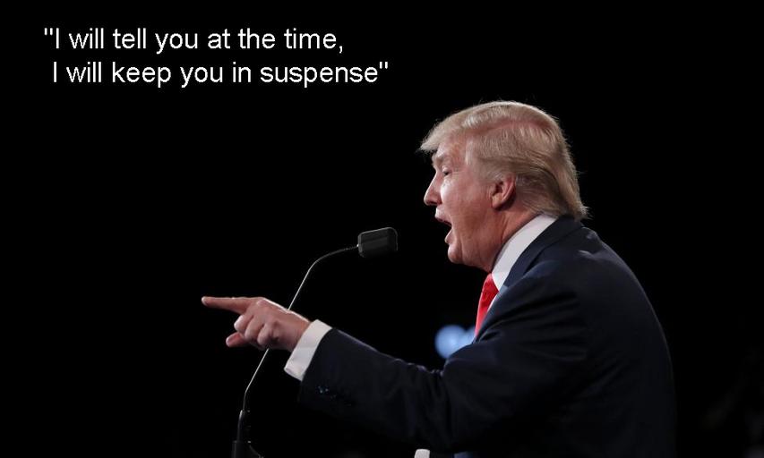 Keywords: donald trump donaldtrump politics public-domain publicdomain u.s.a usa quotation election election campaign electioncampaign hand In their third and final presidential debate, Trump said he would wait to decide whether the outcome was legitimate. "I will tell you at the time, I will keep you in suspense," Trump said. Republican candidate Donald Trump on Wednesday suggested he might reject the outcome of the Nov. 8 U.S. presidential election if he loses, a possibility his Democratic rival Hillary Clinton called "horrifying." In their third and final presidential debate, Trump said he would wait to decide whether the outcome was legitimate. www.reuters.com/article/us-usa-election-idUSKCN12J0ZM In their third and final presidential debate, Trump said he would wait to decide whether the outcome was legitimate. "I will tell you at the time, I will keep you in suspense," Trump said. Republican candidate Donald Trump on Wednesday suggested he might reject the outcome of the Nov. 8 U.S. presidential election if he loses, a possibility his Democratic rival Hillary Clinton called "horrifying." In their third and final presidential debate, Trump said he would wait to decide whether the outcome was legitimate. www.reuters.com/article/us-usa-election-idUSKCN12J0ZM |