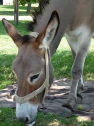 Keywords: donkey brown animal eat head ears halter grass shadow muli gate beige nature