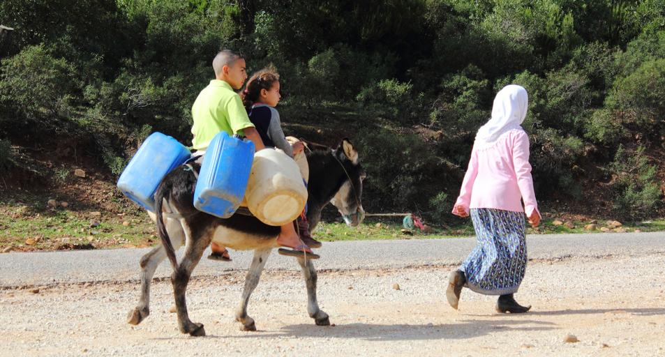 Keywords: donkey riding poor road africa poverty tunisia carry children water mountain lifestyle