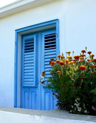 Keywords: door blue entrance home doorway front exterior flowers wall house residence adriatic sea enter facade