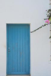 Keywords: door blue white greece home blue white flower
