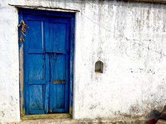 Keywords: door blue wood entrance old front doorway