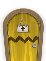 Keywords: door doorway round arch entrance wooden wood front door entry enter exterior door frame up arrow yellow