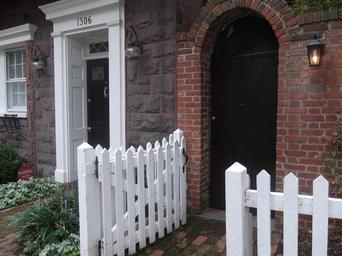 Keywords: door gate lantern georgetown red brick enter entrance doorway open