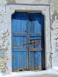 Keywords: door old wood weathered house entrance input goal old door break up blue decay broken greece