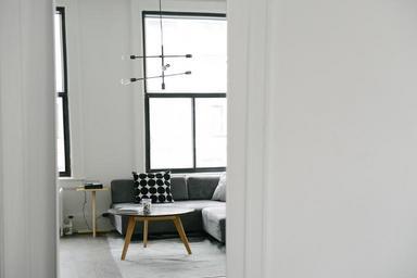 Keywords: doorway entrance living room room home house apartment residence interior couch sofa table windows open