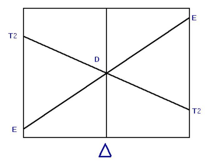 Keywords: DOrgel2.GIF en D Orgel Diagram own Roobear13 2009-12-09 chemistry Transition metals Orbitals energy levels Coordination chemistry Spectroscopy