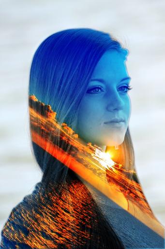 Keywords: double exposure girl woman face nature portrait creative young female person graceful unusual lady effect