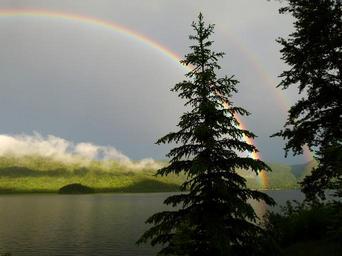 Keywords: double rainbow canim lake british columbia canada weather thunderstorm landscape