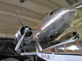 Keywords: Douglas DC-3A OH-VKB 3.JPG en Douglas DC-3A-214 in Finnish Aviation Museum Former SE-BAC Falken this aircraft served with the Swedish ABA company between 1937-1948 later with SAS 1948-1953 with Airtaco Ab 1953-1954 before purchased by Veljekset Karhumäki Oy and registered in Finland as OH-VKB Used as Kar-Air passenger plane 1954-1973 and later for geological survey until 1979 Last flight in 1987 c/n 1975 fi Douglas DC-3A-214 Suomen ilmailumuseossa Entinen SE-BAC Falken tämä lentokone oli ruotsalaisella ABA-yhtiöllä 1937-1948 SAS lla 1948-1953 ja Airtaco Ab lla 1953-1954 ennen myymistä Veljekset Karhumäki Oy lle 1954 Käytetty Kar-Airin matkustajakoneena 1954-1973 ja malminetsintäkoneena vuoteen 1973 Viimeinen lento 1987 sarjanumero 1975 Douglas DC-3 OH-VKB Kar-Air Static museum display Photograph 2010-11-13 MKFI own OH-VKB aircraft Aircraft at the Finnish Aviation Museum Unpainted aircraft 2010 in Vantaa November 2010 in Finland Files by User MKFI Taken with Canon PowerShot SX10 IS |