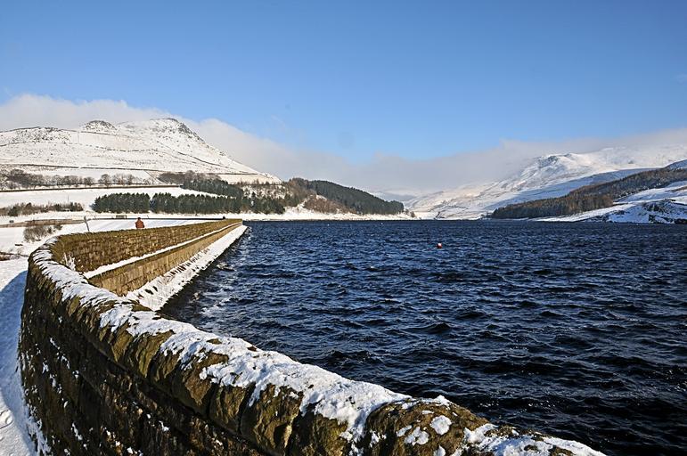 Keywords: dovestones resovoir with winter snow united kingdom hill snow mountain winter scenery sky seasons blue sky ice water frozen landscape outdoor