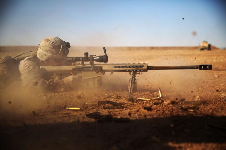 | Keywords: Down and Dirty (16080170847).jpg Cpl Kaden Prickett machine gunner and team leader with Golf Company 2nd Battalion 7th Marine Regiment Special Purpose Marine Air Ground Task Force-Crisis Response-Central Command fires a 50 caliber Special Applications Scoped Rifle at a target 1 200 meters away in the Central Command area of operations Jan 6 2015 Marines and sailors of Golf Company spent time on the range getting acquainted with various weapons systems and cross-training one another in their respective areas of expertise U S Marine Corps photo by Cpl Carson A Gramley/Released https //www flickr com/photos/marine_corps/16080170847/ Down and Dirty 2015-01-12 15 20 https //www flickr com/people/40927340 N03 Marines from Arlington VA United States PD-USGov United States Marine Corps Official Page https //flickr com/photos/40927340 N03/16080170847 2016-09-03 21 52 42 United States Government Work I Marine Expeditionary Force Operation Inherent Resolve |