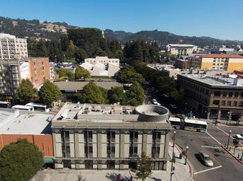 Keywords: outdoor Kaplan building in foreground, northbound Shattuck going right to left, Campanile (Bell Tower) in background in top center. Kaplan building in foreground, northbound Shattuck going right to left, Campanile (Bell Tower) in background in top center. |