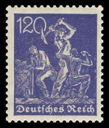 Keywords: DR 1921 188 Bergmänner.jpg / Briefmarkenbeschreibung Dauermarkenserie Ziffern Arbeiter und Posthorn definitive stamp series numbers workers and post horns Graphics by Paul Neu Ausgabepreis 120 Pfennig First Day of Issue / Erstausgabetag Oktober 1921 WZ Rauten und Mai 1922 WZ Waffeln Michel-Katalog-Nr 168 und 188 Deutsches Reich scanned by NobbiP 2010-10-23 scanned by NobbiP 1940 <gallery> File DR WZ 1 Rauten jpg WZ Rauten File DR WZ 2 Waffeln jpg WZ Waffeln File DR 1921 177 Ziffern im Rechteck jpg 158 / 177 File DR 1921 178 Ziffern im Rechteck jpg 159 / 178 File DR 1921 179 Ziffern im Rechteck jpg 160 / 179 File DR 1921 180 Ziffern im Rechteck jpg 161 / 180 File DR 1921 181 Ziffern im Rechteck jpg 162 / 181 File DR 1921 182 Ziffern im Rechteck jpg 163 / 182 File DR 1921 183 Ziffern im Rechteck jpg 164 / 183 File DR 1921 184 Schmiede-Arbeiter jpg 165 / 184 File DR 1921 185 Ziffern im Rechteck jpg - / 185 File DR 1921 186 Schmiede-Arbeiter jpg 166 / 186 File DR 1921 187 Bergmänner jpg 167 / 187 File DR 1921 189 Landwirtschaftliche Arbeiter jpg 169 / 189 File DR 1921 190 Landwirtschaftliche Arbeiter jpg 170 / 190 File DR 1921 191 Posthorn jpg 171 / 191 File DR 1921 192 Posthorn jpg 172 / 192 File DR 1921 193 Posthorn jpg 173 / 193 File DR 1921 194 Ziffern im Queroval jpg 174 / 194 File DR 1921 195 Ziffern im Queroval jpg 175 / 195 File DR 1921 196 Landwirt mit Pferd und Pflug jpg 176 / 196 </gallery> Philately Bergmänner Nennwert 120 Pfennig 1921-10 und 1922-05 Neu unbekannt Buchdruck 168 und 188 Deutsches Reich Miners on stamps 1921 stamps of Germany |