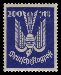 Keywords: DR 1923 267 Flugpost Holztaube.jpg / Briefmarkenbeschreibung de Flugpost-Markenserie Holztaube en airmail stamp series wooden dove Ausgabepreis 200 Mark First Day of Issue / Erstausgabetag Mai 1923 Michel-Katalog-Nr 267 Deutsches Reich scanned by NobbiP 2010-10-11 de Ernst Aufseeser 1880-1940 scanned by NobbiP copyright information PD-old-auto-1923 1940 PD-text PD in Germany due to age PD in US because central design element published before 1923 eg in File DR 1922 210 Flugpost Holztaube jpg; the remainder is ineligible for copyright <gallery> File DR 1923 263 Flugpost Holztaube jpg File DR 1923 264 Flugpost Holztaube jpg File DR 1923 265 Flugpost Holztaube jpg File DR 1923 266 Flugpost Holztaube jpg </gallery> Philately Holztaube Nennwert 200 Mark 1923-05 Aufseesser Buchdruck 267 Deutsches Reich Pigeons on stamps Airmail stamps 1923 stamps of Germany German stamps review keep Stamps by Ernst Aufseeser Birds on stamps of Germany |