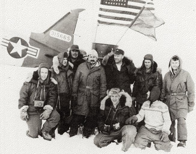 Keywords: Dr. Albert Paddock Crary with team at the North Pole.jpg en The first landing of an airplane on an ice floe at the North Pole 3 May 1952 -- Albert Crary chief scientist is fourth from left Photo credit National Air and Space Museum/U S Air Force NASM/USAF photo photo on file with National Science Foundation all academic or educational uses of photo permitted 1952-05-03 National Science Foundation National Air and Space Museum/U S Air Force NASM/USAF photo other versions PD-USGov Uploaded with UploadWizard Geophysicists Glaciologists Arctic expeditions North Pole Fur fashion in 1952 |