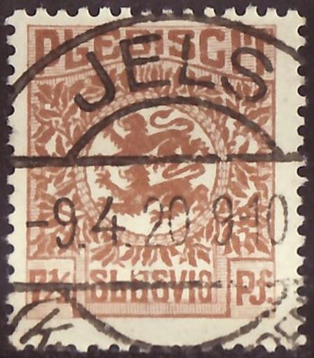| Keywords: DRAbstG 1920 Schleswig MiNr03 B002a.jpg Stamp of the German Empire - plebiscite area Schleswig ; definitive stamp of 1920<br /> Stamp Michel No 3; AFA No 17 DR-SL <br /> Color yellow brown<br /> Watermark Schleswig No 1 standing crosses <br /> Nominal value 7½ Pf Pfennig <br /> Postage validity - 1920-01-25 1920-05-27 Zone 1 <br /> - 1920-01-25 1920-06-23 Zone 2 <br /> Postmark Jels other date 1920-04-09 contemporary Denmark scan of original other date 1920-01-25 first issue day of the stamp <br /> other date 1920-04-09 date of postmark Commission Internationale de Surveillance du Plébiscite Slesvig PD-Germany-§134-KUG PD-Denmark PD-1923 Philately Coat of arms of the Duchy of Schleswig in circle; upper stamp picture inscription PLEBISCIT ; lower stamp picture inscription SLESVIG ; inscription with brown letters other date 1920-01-25 Commission Internationale de Surveillance du Plébiscite Slesvig A Carzens Druckerei H H Thiele letterpress printing 2 745 500 comb perforation K 14 14½ Deutsche Abstimmungsgebiete Schleswig Nr 3 1920 stamps of Northern Schleswig 03_2_1 Brown stamps Jels |