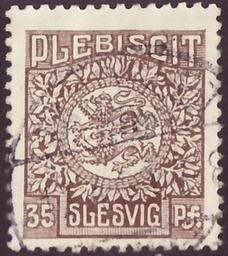 | Keywords: DRAbstG 1920 Schleswig MiNr08 B002.jpg Stamp of the German Empire - plebiscite area Schleswig ; definitive stamp of 1920<br /> Stamp Michel No 8; AFA No 22 DR-SL <br /> Color brown shades <br /> Watermark Schleswig No 1 standing crosses <br /> Nominal value 35 Pf Pfennig <br /> Postage validity - 1920-01-25 1920-05-27 Zone 1 <br /> - 1920-01-25 1920-06-23 Zone 2 <br /> scan of original other date 1920-01-25 first issue day of the stamp Commission Internationale de Surveillance du Plébiscite Slesvig PD-Germany-§134-KUG PD-Denmark PD-1923 inscription with white letters other date 1920-01-25 Commission Internationale de Surveillance du Plébiscite Slesvig A Carszens Druckerei H H Thiele letterpress printing 1 801 100 comb perforation K 14 14½ Deutsche Abstimmungsgebiete Schleswig Nr 8 1920 stamps of Northern Schleswig 08_2_1 Brown stamps |
