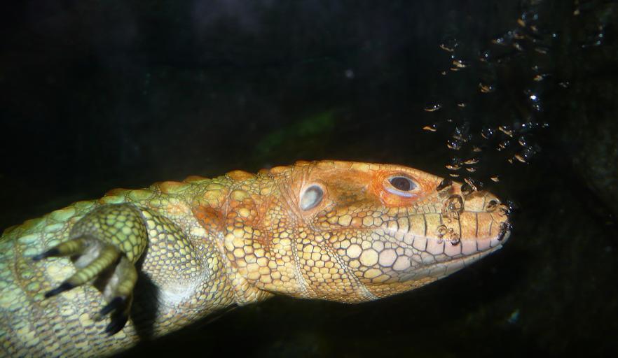 Keywords: Dracaena guianensis (4).jpg en Caiman Lizard Dracaena guianensis swimming underwater Own TimVickers 2008-12-07 Teiidae heads Dracaena guianensis