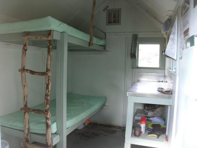 Keywords: Dracophyllum hut 7.jpg Dracophyllum hut W Tararua Range Tararua interior two bunks 2016-01-06 Own Sarang Dracophyllum Hut