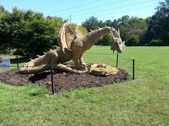 Keywords: dragon garden haybale nature statue yard art egg feild