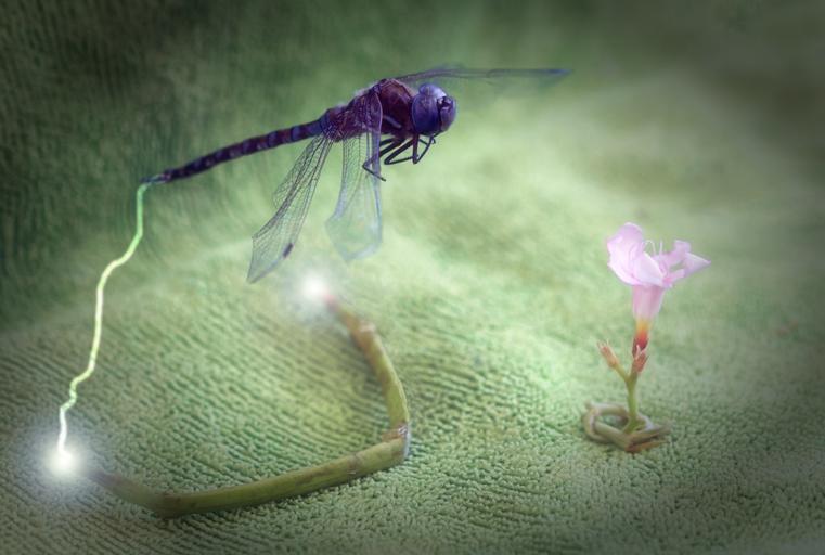 Keywords: dragonfly bug insect flower plant fantasy electricity wings
