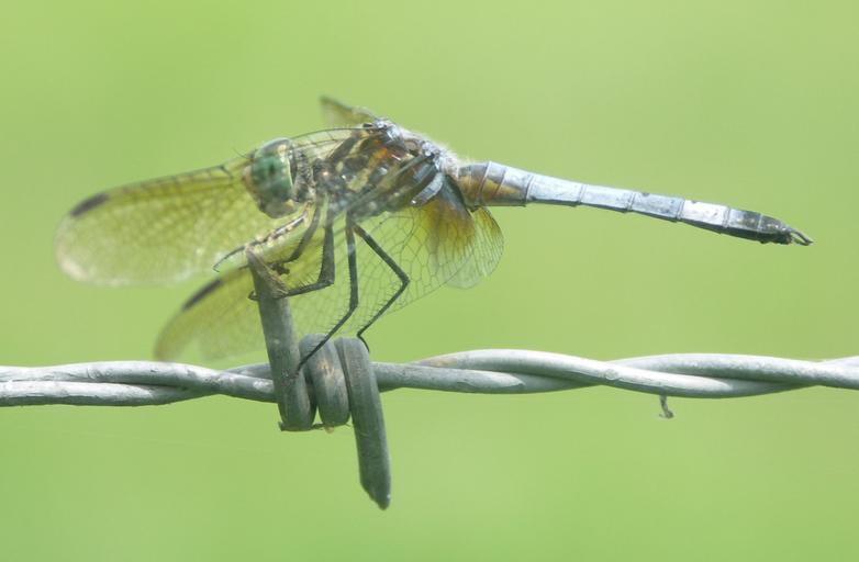 Keywords: dragonfly insect bug wings nature outside close-up wild life green barbwire