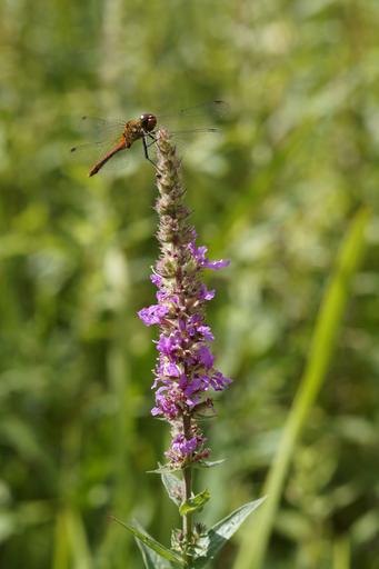 Keywords: dragonfly red dragonfly red flight insect insect wetlands flora fauna waters near bank blood-red loosestrife