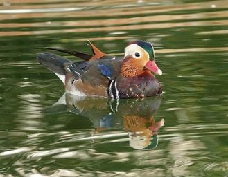 Keywords: drake mandarin duckling animal water pond bird surface bathing duck cute afloat